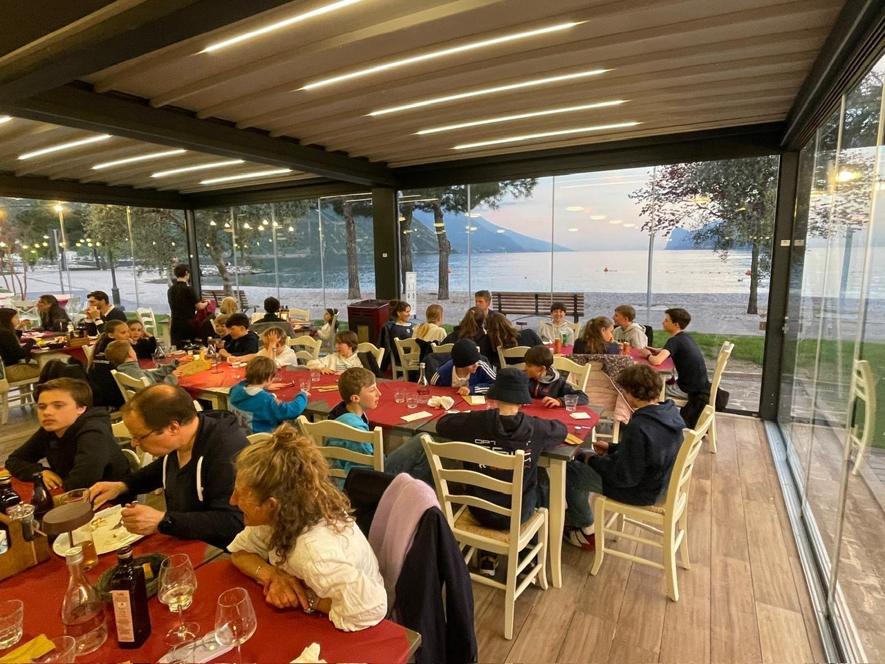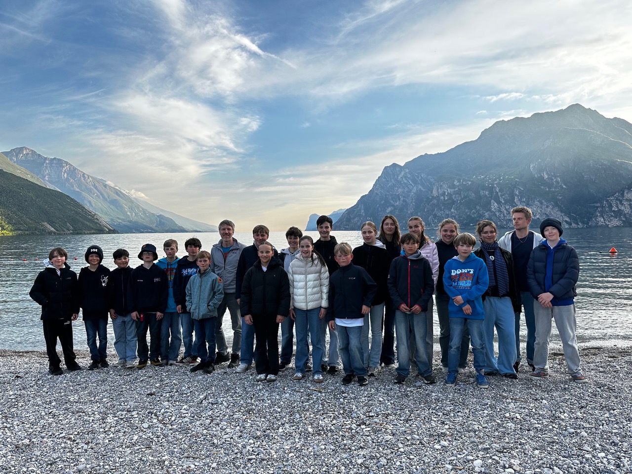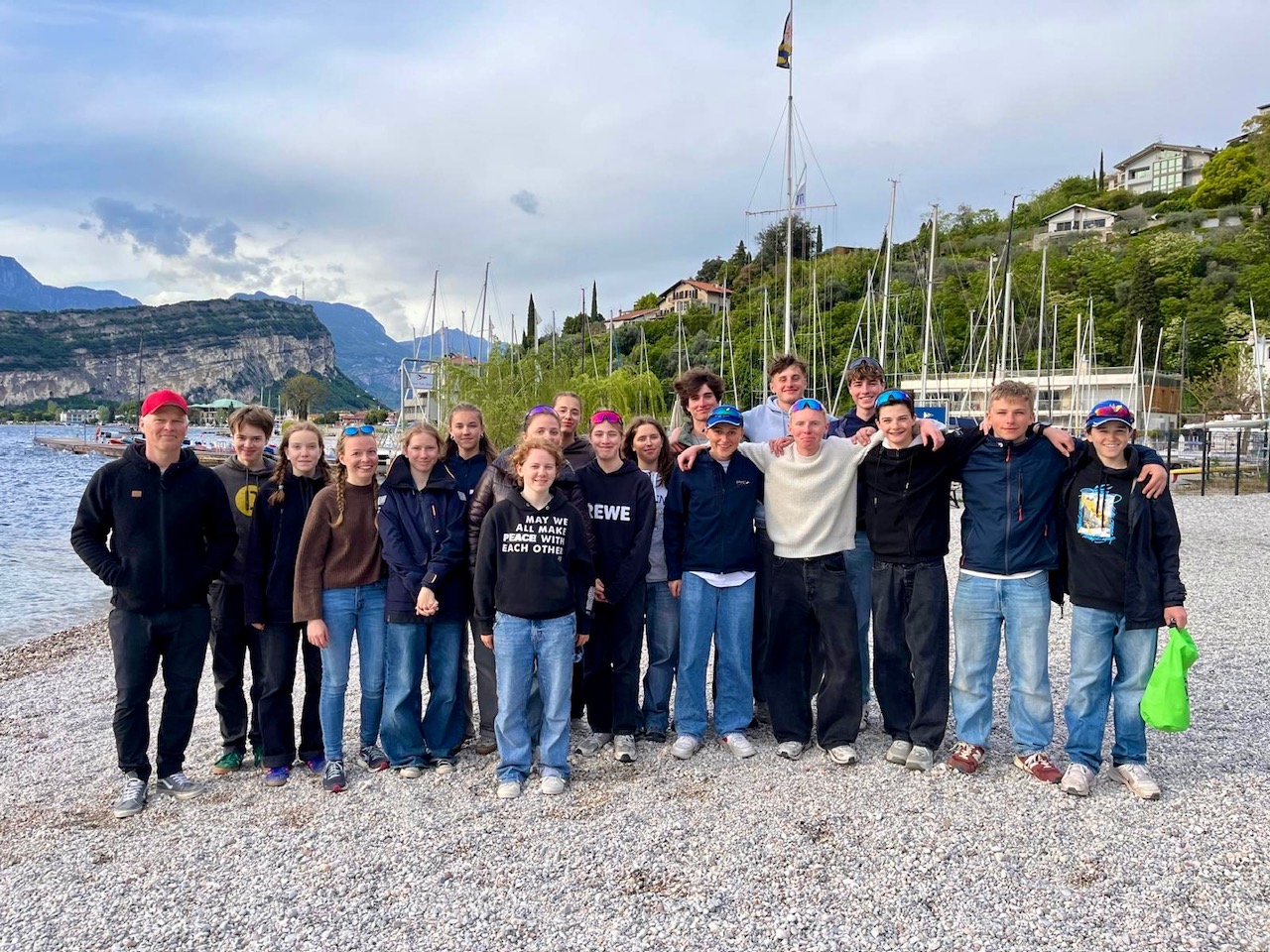 Auch abseits vom Segeln hatten wir eine richtig gute Zeit: Ostersonntag waren nur wir acht 420er aus dem PYC zusammen Pizza essen, Ostermontag waren wir dann gemeinsam mit allen PYC-Optis essen. Und am letzten Abend waren wir mit der ganzen Berliner Gruppe (PYC, YCBG, VSaW und der Kader - insgesamt 48 Seglerinnen, Segler und Trainer) gemeinsam essen und hatten danach einen freien Abend – richtig schön, mal gemeinsam zu chillen. Das hat das Trainingslager nochmal richtig abgerundet. Insgesamt war die Woche am Gardasee eine coole Mischung aus Training, Teamarbeit, Spaß und Segeln. Auch wenn’s manchmal anstrengend war – wir würden jederzeit wieder hinfahren!