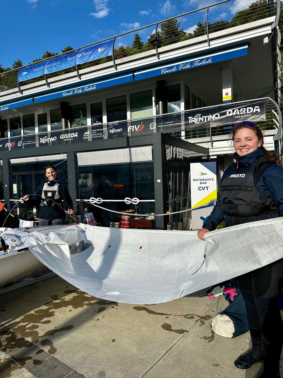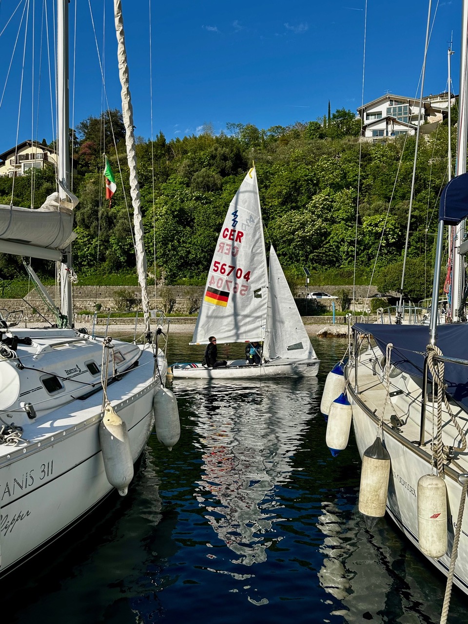Nach den Trainingstagen begann dann am MIttwoch die Regatta - der LUPO-Cup, die eigentlich vier Tage dauern sollte. Am Abend vor dem Start kam jedoch die Info, dass sie nur bis Freitag gehen würde, weil der Papst gestorben war und die Beerdigung am Samstag stattfinden sollte. Also gab’s drei Tage Wettkampf – und auch wenn der Wind oft nur mittel war, konnten wir insgesamt 10 spannende Rennen fahren. Am letzten Tag drehte der Wind plötzlich um 90 Grad und wurde deutlich stärker – das war noch mal eine echte Herausforderung zum Abschluss.
