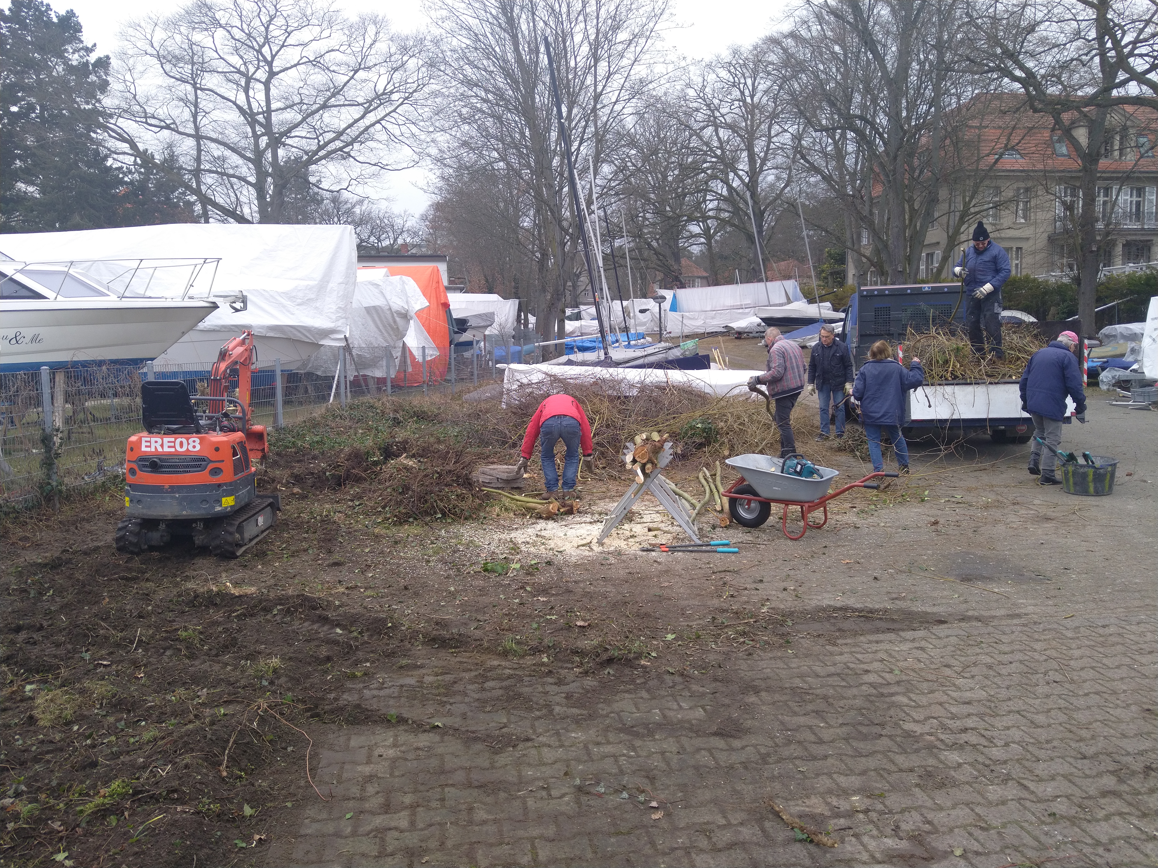 Die Grünsportgruppe hat nach Absprache in Eigeninitiative große, zuvor überwucherte und ungepflegte Freiflächen auf der Dependance am Wasser sowie neben der Sliprampe neu angelegt.