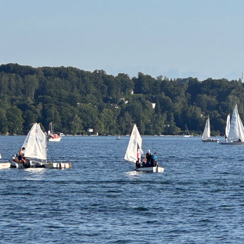 Ein großer Dank geht an den Bayerischen Yacht Club für die phantastische Organisation der Woche: nicht nur auf dem Wasser, sondern auch an Land wo es neben Abendessen und Lunchtüten auch immer wieder frisches Obst oder süße Teilchen für alle gab, die Eltern mit dem Zuschauerboot Petunia bei Rosé den See genießen und zugucken konnten, mehr als genug Platz für alle Optis und insgesamt überträgt sich die freundlich, gediegen-entspannte Atmosphäre sofort auf alle. Wir kommen wieder!