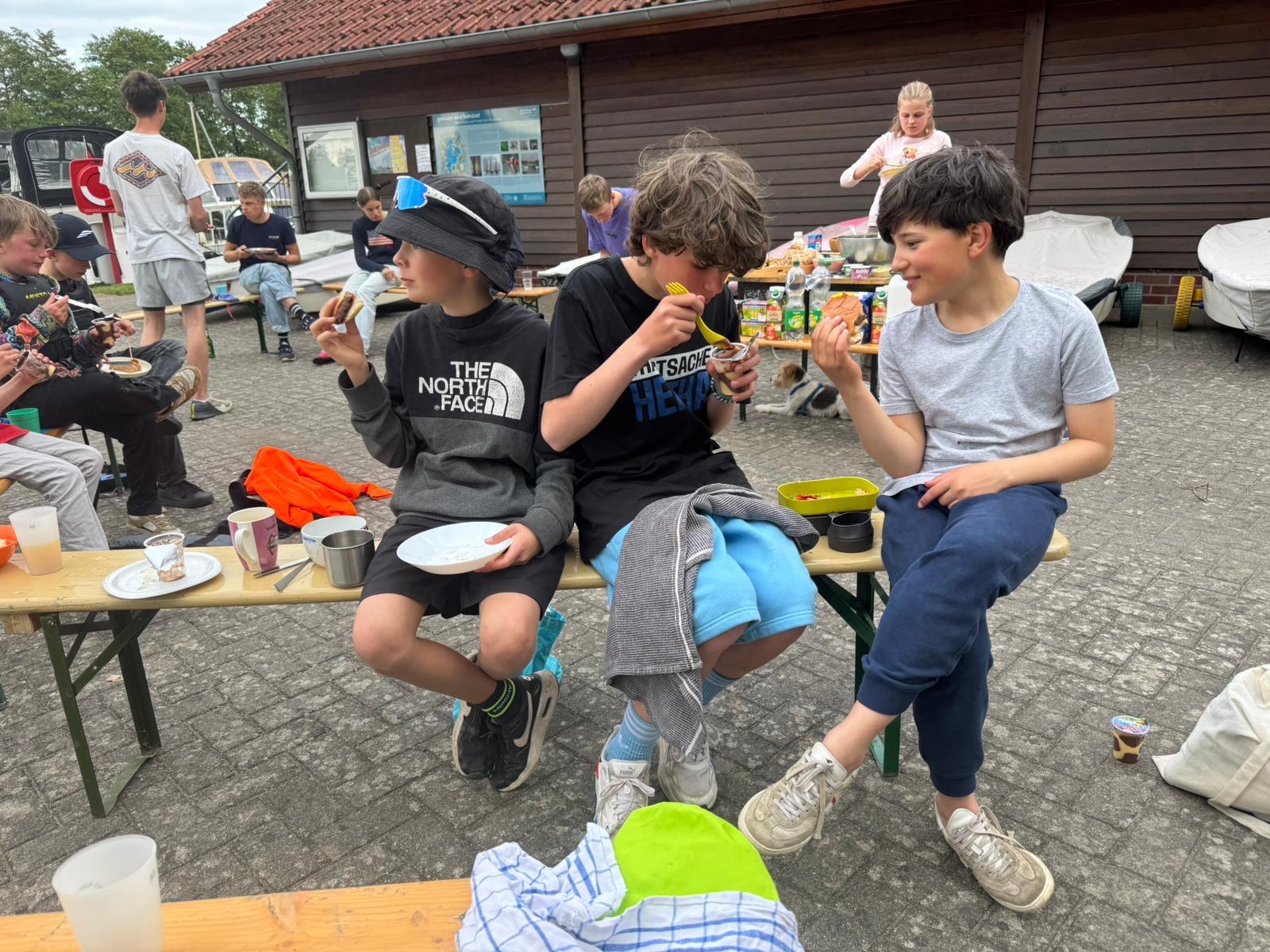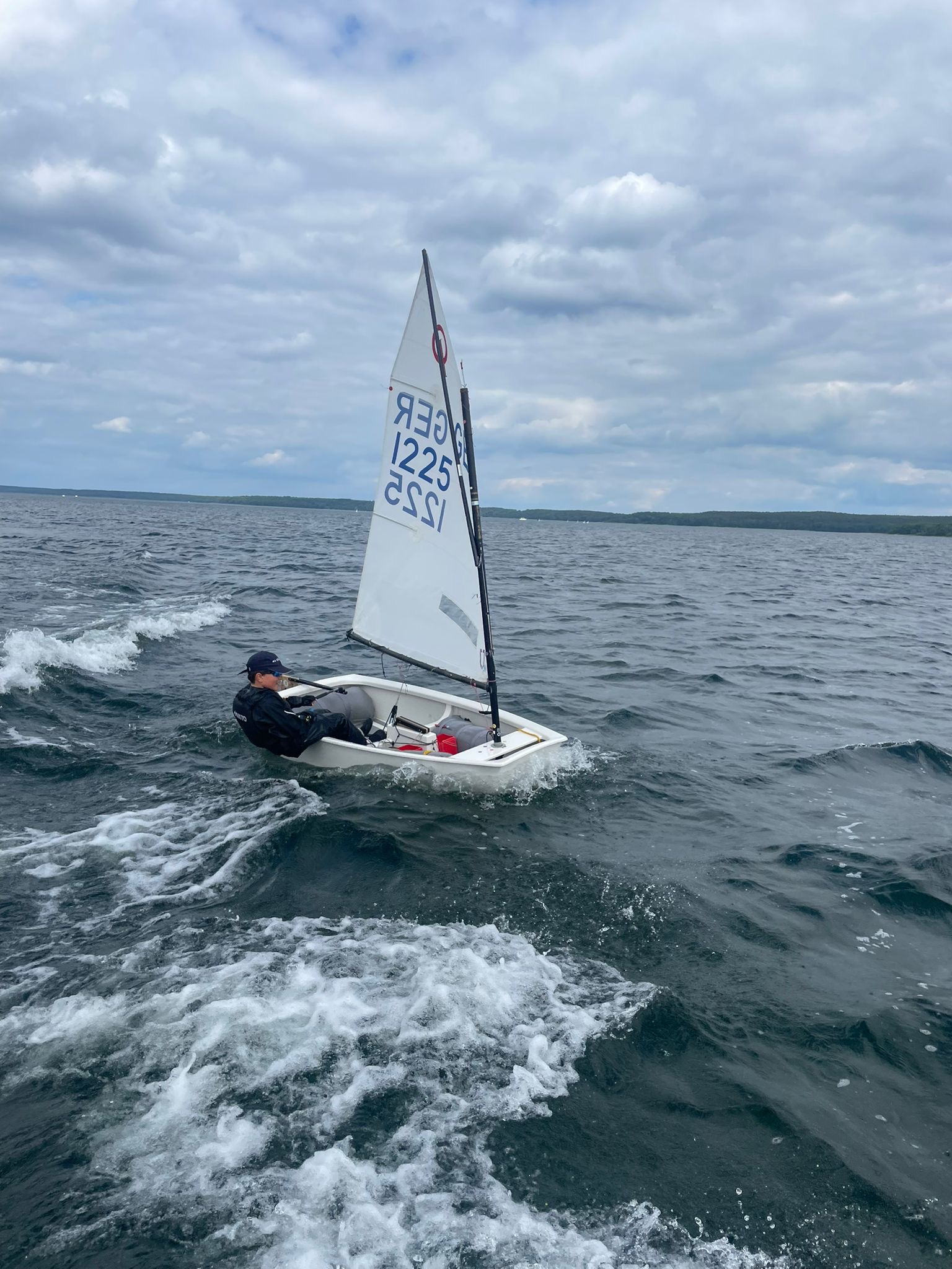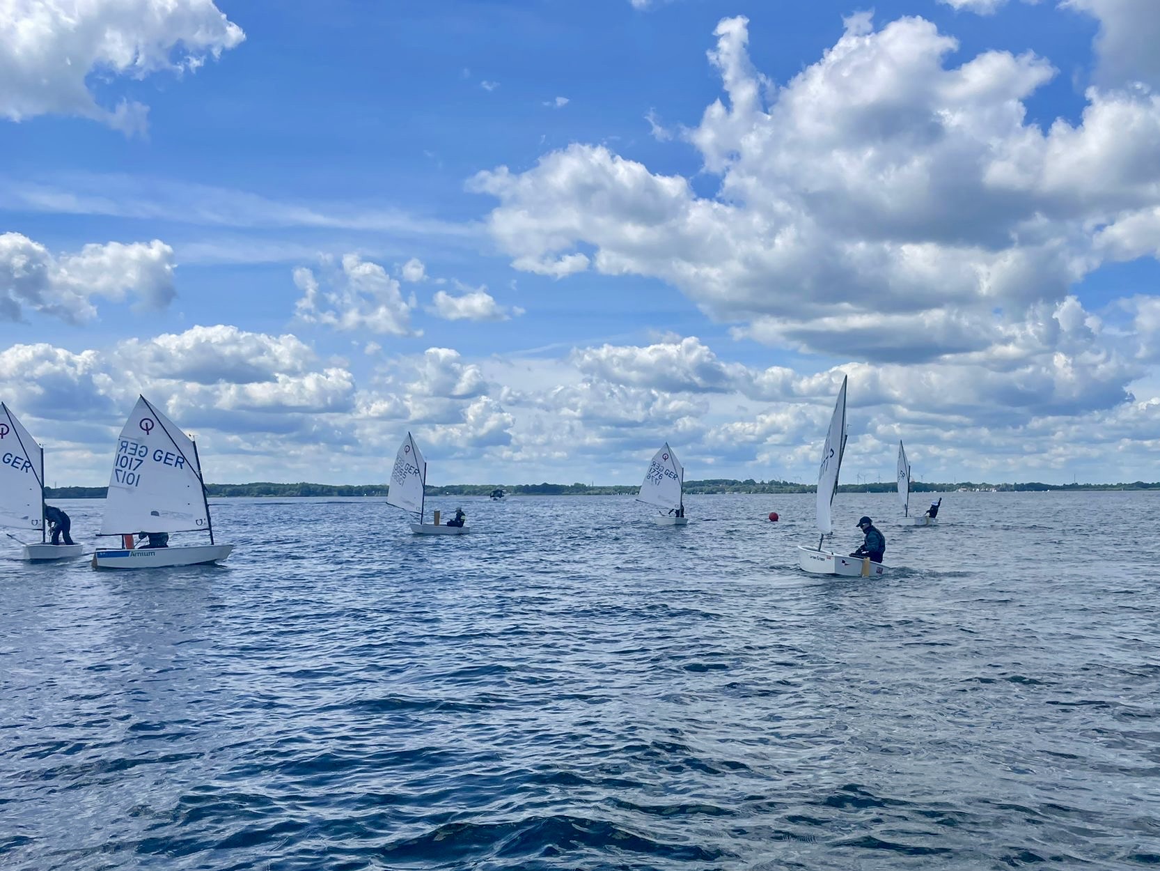 Am Sonntag war ein strammes Programm: 9:30 Uhr erster Start und dann vier Wettfahrten. Vorher mussten wir auch noch die Zelte ausräumen (die unsere Eltern dann netterweise abgebaut haben während wir auf dem Wasser waren).