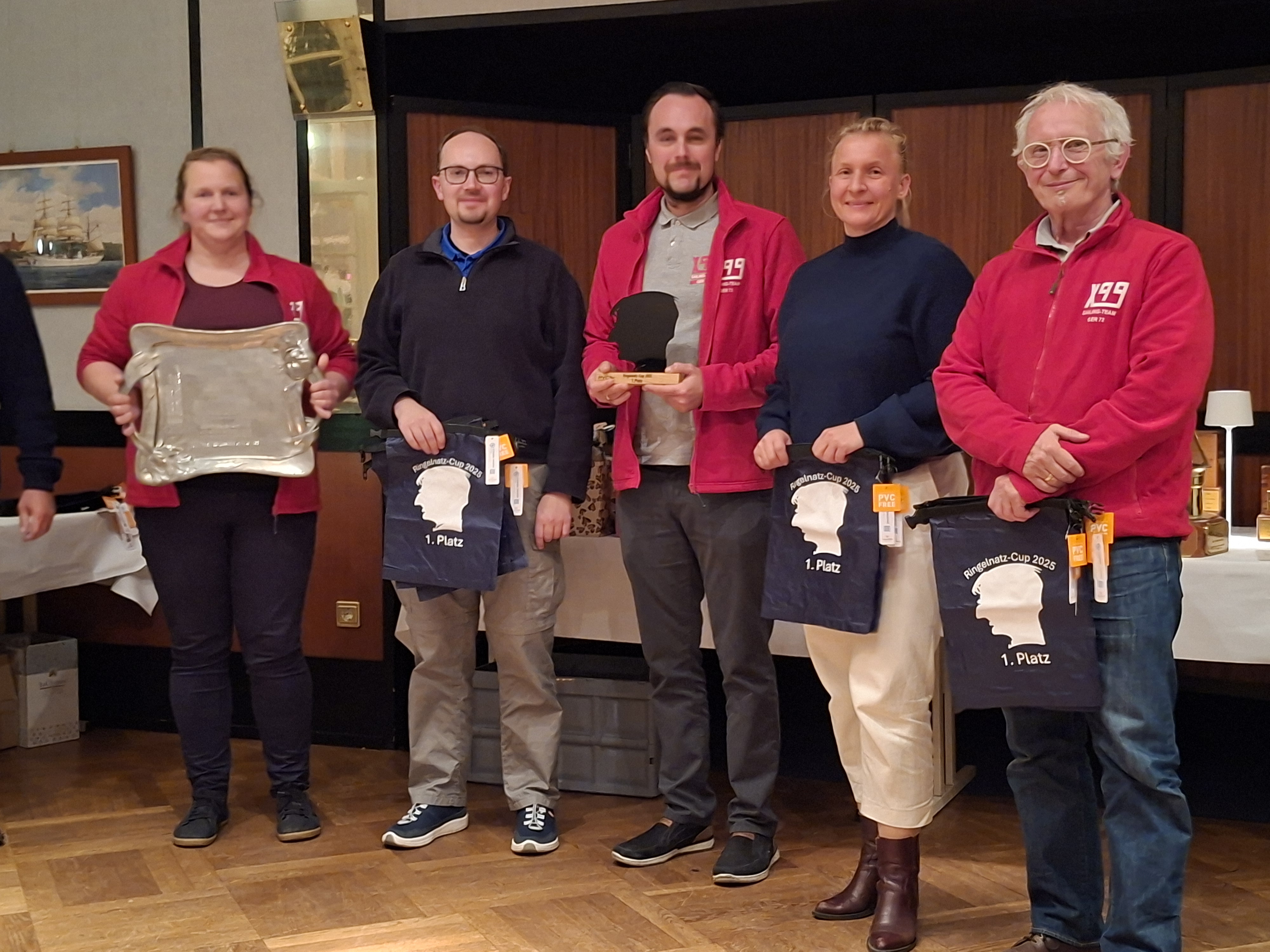 Im Anschluss fand die feierliche Siegerehrung mit der Vergabe der Wanderpreise statt. Den Preis für das schnellste gesegelte Schiff überreichte eine Abordnung des SSS Gorch Fock, die diesen Preis auch gestiftet hat. Gewonnen hat ihn die GER 1420 „Meteor“ von der Seglervereinigung 1903. Auch den Preis für das schnellste berechnete Boot gewann der 20er Jollenkreuzer von Harald Ludwig mit Erik Witzmann am Steuer. Ergebnisse unter https://www.manage2sail.com/de-DE/event/RNC25#!/results?classId=24b5ce85-f36b-45f3-99f4-3ba9018660da