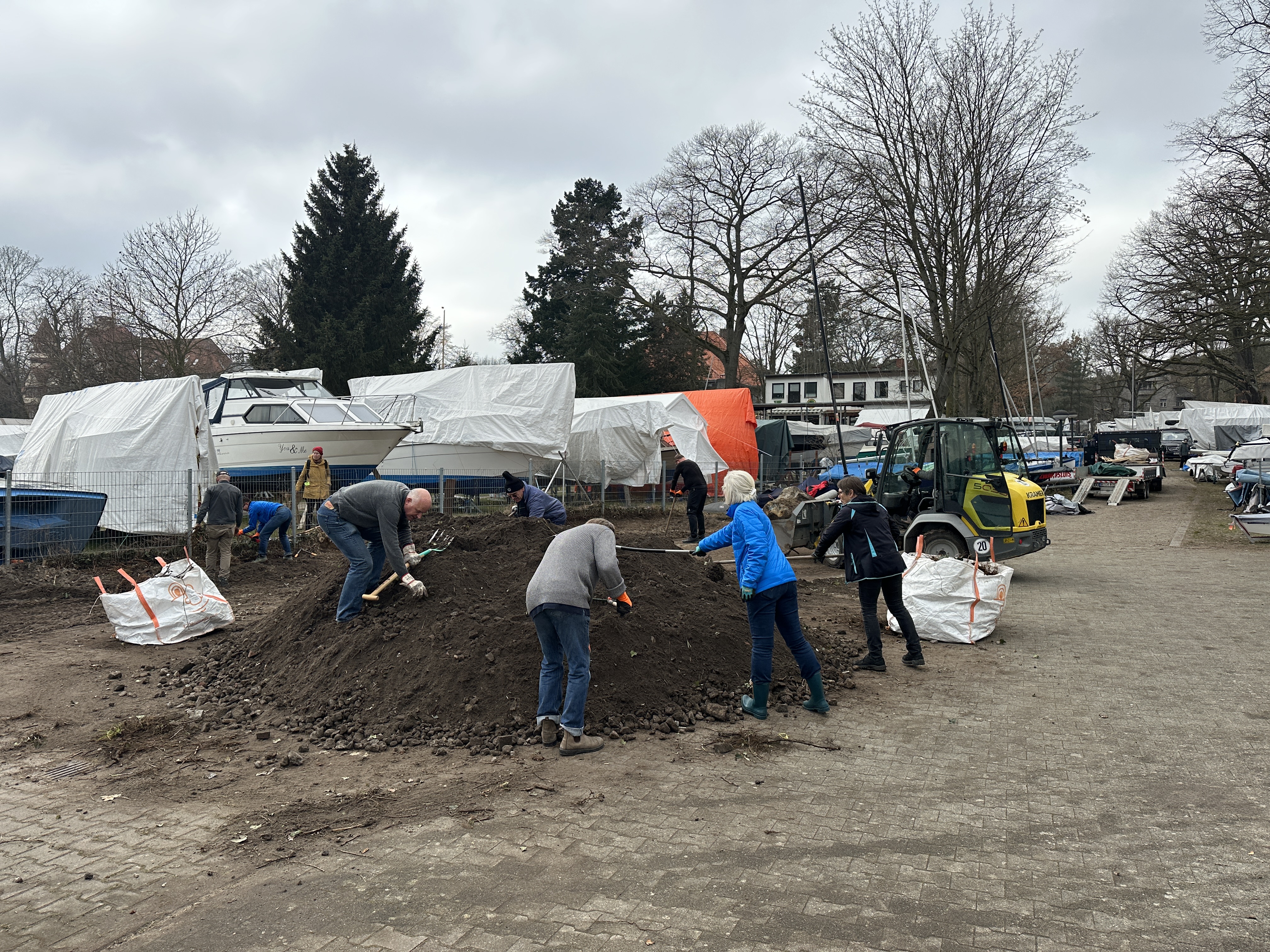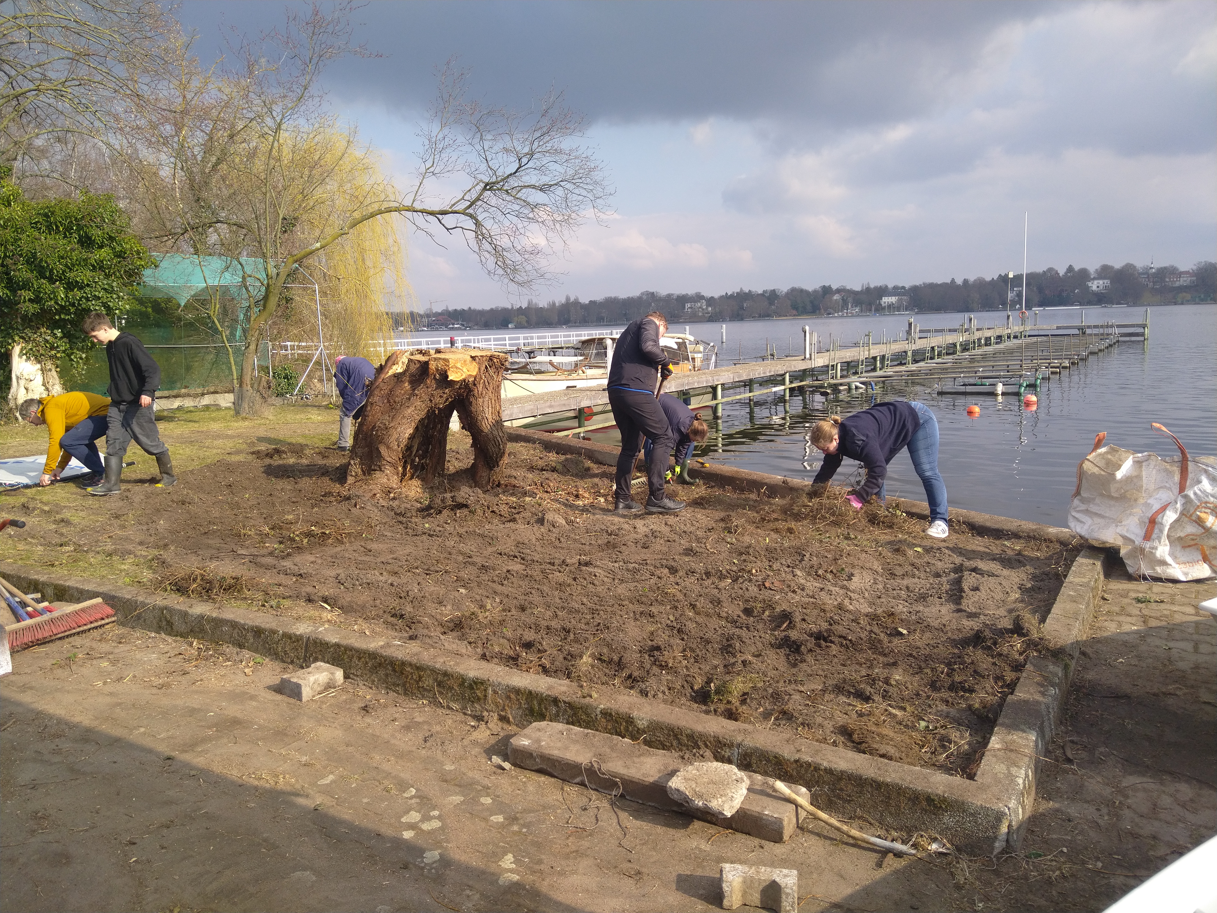 Die Grünsportgruppe hat nach Absprache in Eigeninitiative große, zuvor überwucherte und ungepflegte Freiflächen auf der Dependance am Wasser sowie neben der Sliprampe neu angelegt.