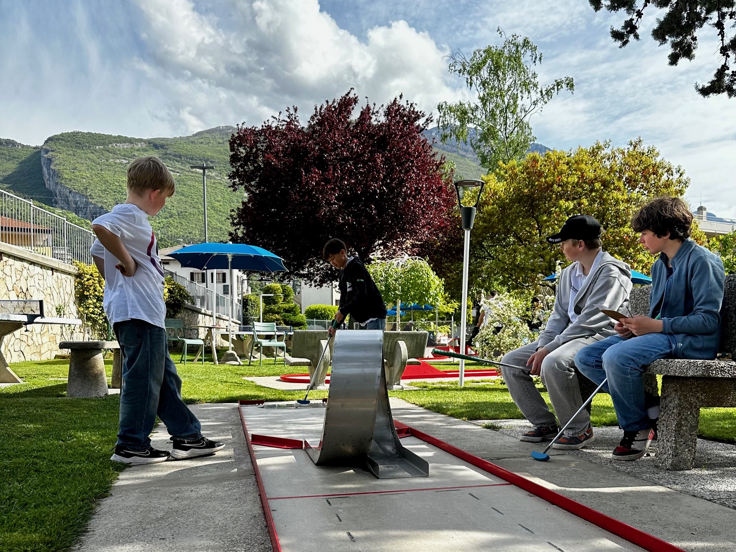 Einige von uns sind mit der Fähre nach Limone gefahren und sind zu einem Wasserfall gelaufen und waren in einem Zitronenmuseum. Und dann haben wir noch Minigolf gespielt.